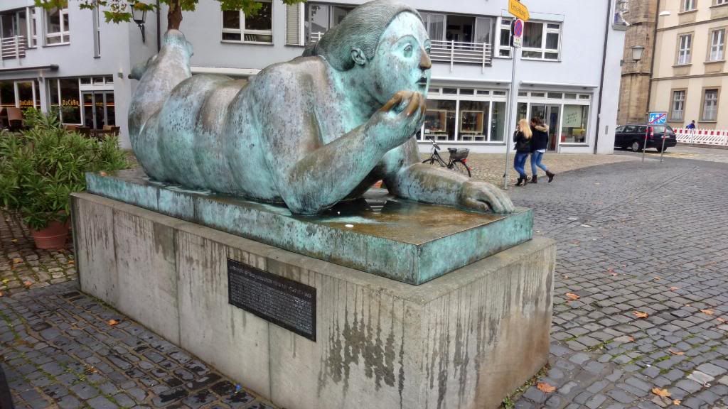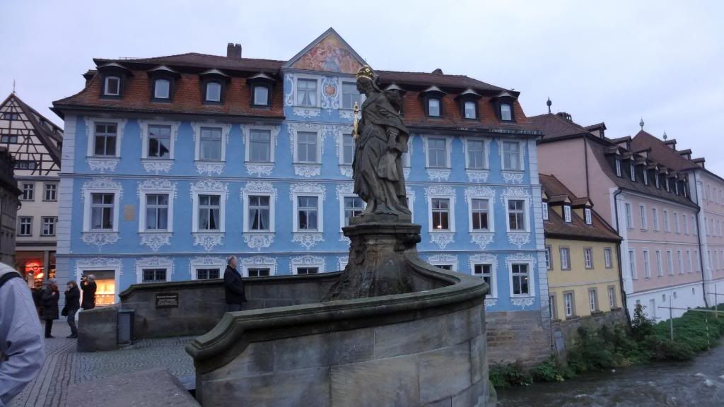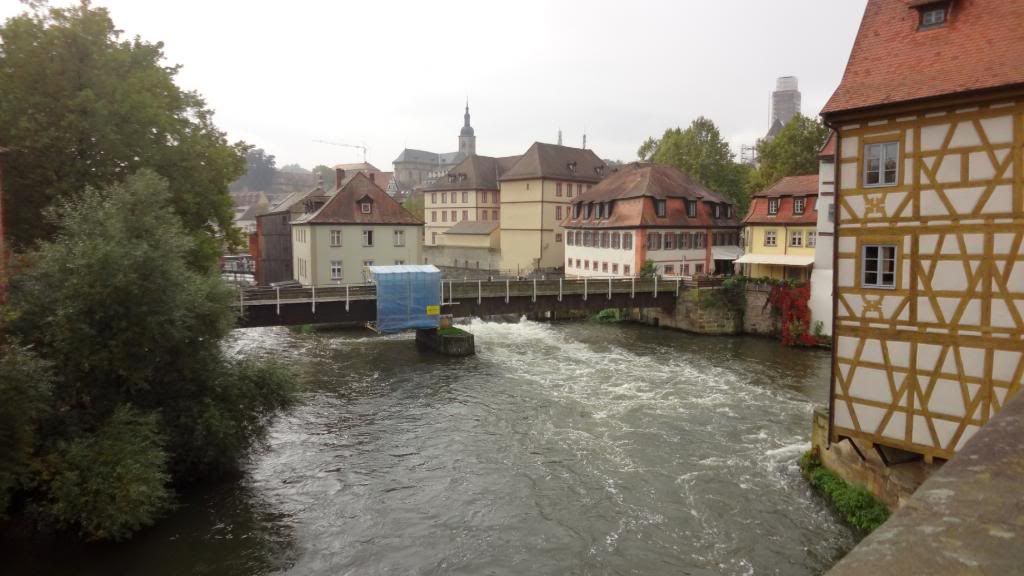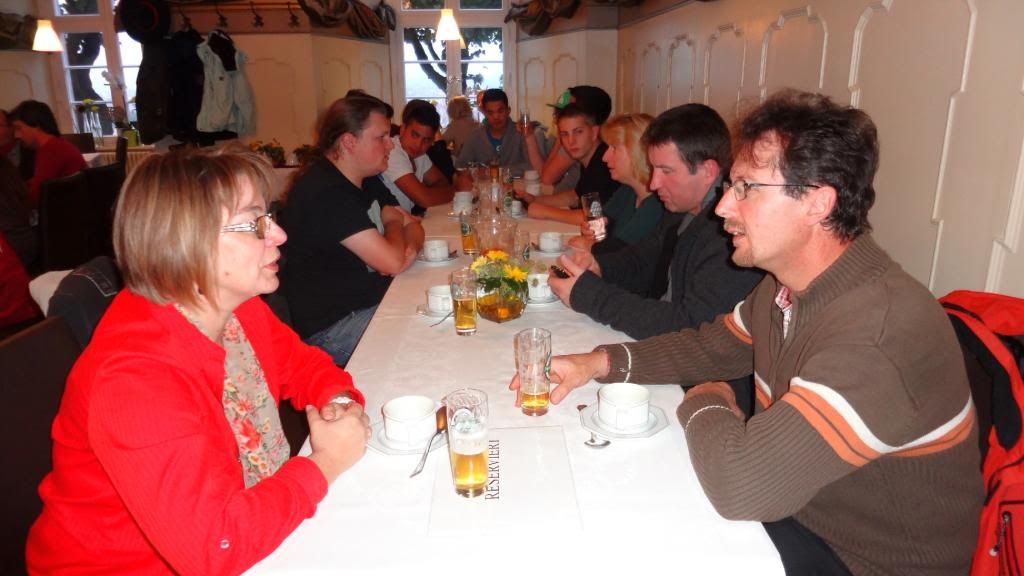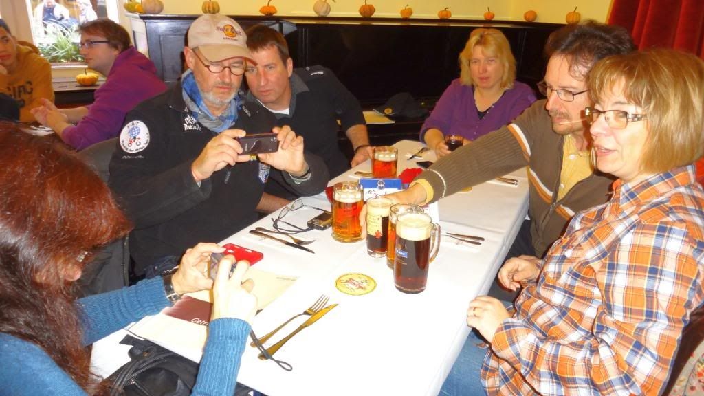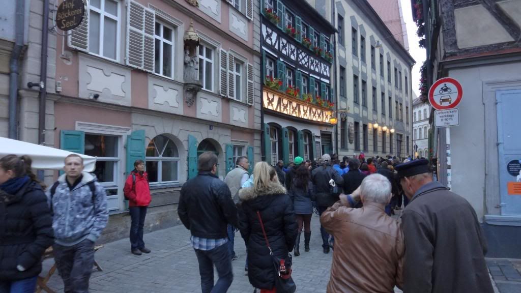 Am späten Nachmittag ging es hinauf zum Cafè Restaurant am Michaelsberg. Dort gab es ein Herrenpils - Biersüppchen mit Bauernbrotcroutons (etwas herb ;-) , dazu Bamberger Bier. Danach absolvierten wir einen unterhaltsamen Spaziergang "rund ums Bier" durch die Altstadt. Unser Guide verstand es mit witzigen Anekdoten und außergewöhnlichen Ein- und Ausblicken die Truppe zu unterhalten. Um kurz vor sieben stoppten wir am Restaurant Eckerts im Hotel Nepomuk. Ein wirklich toll ausgestattetes Gasthaus für gehobene Ansprüche. Direkt am Wehr mit integriertem Unterwasserkraftwerk. Es gab leckeren Schweinerücken an Lagerbiersauce auf Bohnengemüse und Reibekuchen oder Forellenfilet aus dem Biersud mit rissolierten Kartoffeln und Salat , dazu Eckerts Bier und anschließen marinierte Früchte mit Bierschaum überbacken an Landbiereis. Wir probierten auch noch ein sogenanntes "Damenbier", welches einen besonders fruchtigen Geschmack hat. Wobei zu bemerken ist, dass der Braumeister in diesem Haus eine Frau ist.