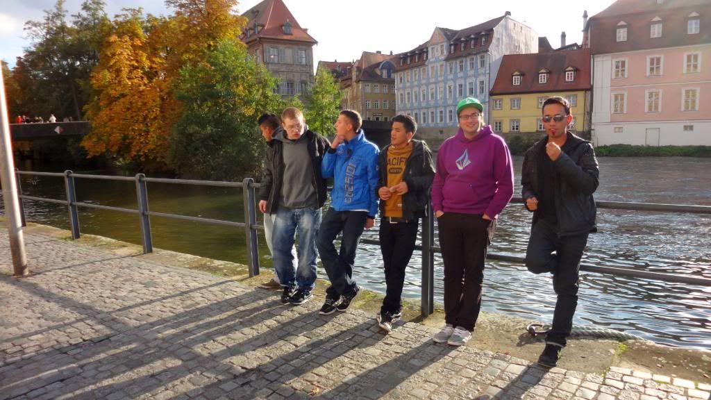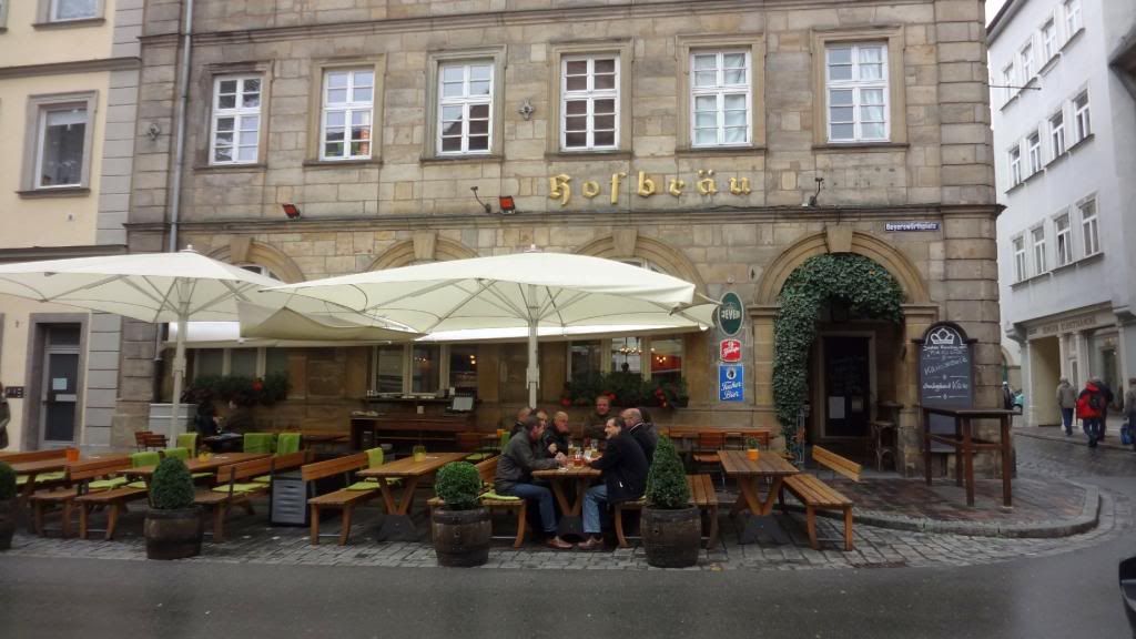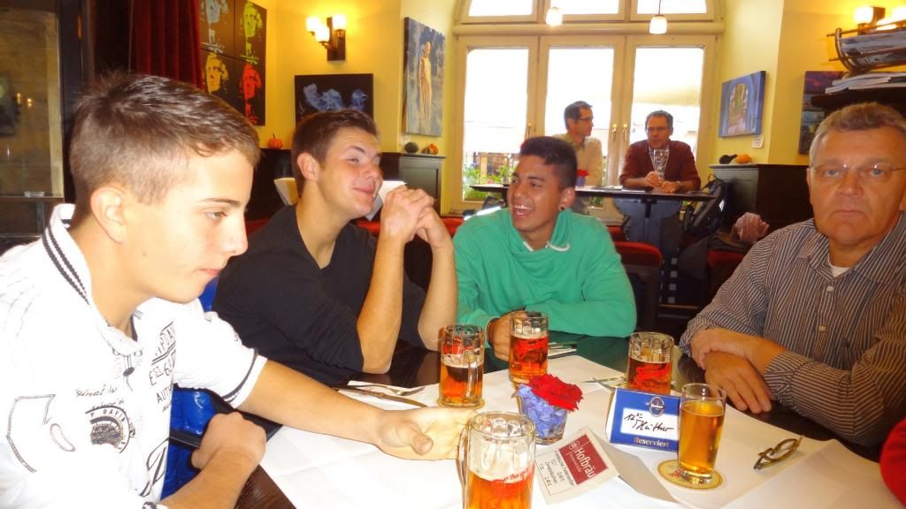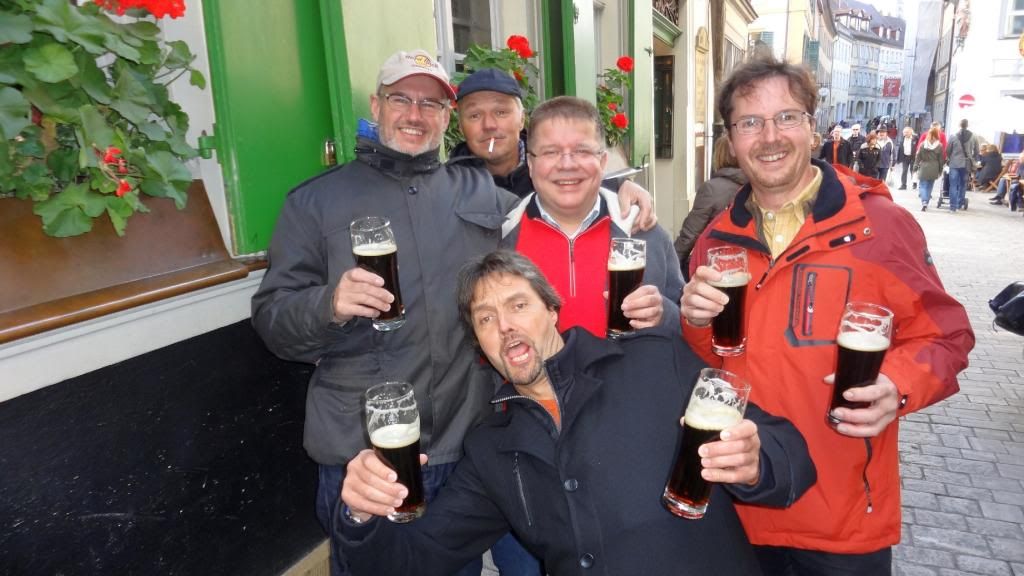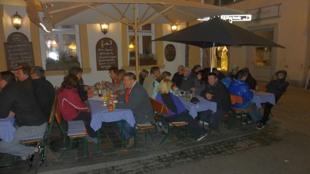 Im Anschluss marschierten wir führerlos durch die Altstadt. Das Essen im Eckerts war zwar exzellent, aber wenig. So ließen wir uns in der Altstadt draußen vor einem Lokal nieder und bestellten einen Nachschlag. Der Nachtisch war die Bedienung - ein richtiges Früchtchen. Den ganzen Abend über versuchten wir verzweifelt ein Bier vom Bockbieranstich beim Schlenkerla zu ergattern. Keine Chance! Die Schlange vor dem Lokal wurde bis Mitternacht nicht kleiner. So ließen wir uns in einem Nachbarlokal - dem Ambräusianum - nieder. Einer Privatbrauerei, die erst zehn Jahre existiert. Dort pumpten wir noch ein paar Ambräusianum Hell (nicht Hölle!). Dann ging es mit dem Taxi nach Hause. Dort zechten einige auf der Etage mit gewöhnlichem Flaschenbier weiter, andere zog es noch in die Diskothek.