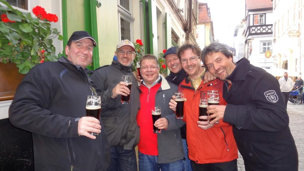 Im Anschluss marschierten wir führerlos durch die Altstadt. Das Essen im Eckerts war zwar exzellent, aber wenig. So ließen wir uns in der Altstadt draußen vor einem Lokal nieder und bestellten einen Nachschlag. Der Nachtisch war die Bedienung - ein richtiges Früchtchen. Den ganzen Abend über versuchten wir verzweifelt ein Bier vom Bockbieranstich beim Schlenkerla zu ergattern. Keine Chance! Die Schlange vor dem Lokal wurde bis Mitternacht nicht kleiner. So ließen wir uns in einem Nachbarlokal - dem Ambräusianum - nieder. Einer Privatbrauerei, die erst zehn Jahre existiert. Dort pumpten wir noch ein paar Ambräusianum Hell (nicht Hölle!). Dann ging es mit dem Taxi nach Hause. Dort zechten einige auf der Etage mit gewöhnlichem Flaschenbier weiter, andere zog es noch in die Diskothek.